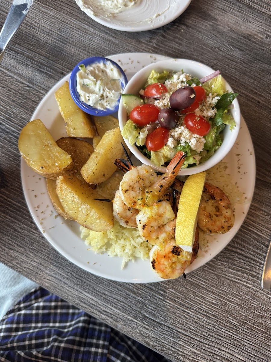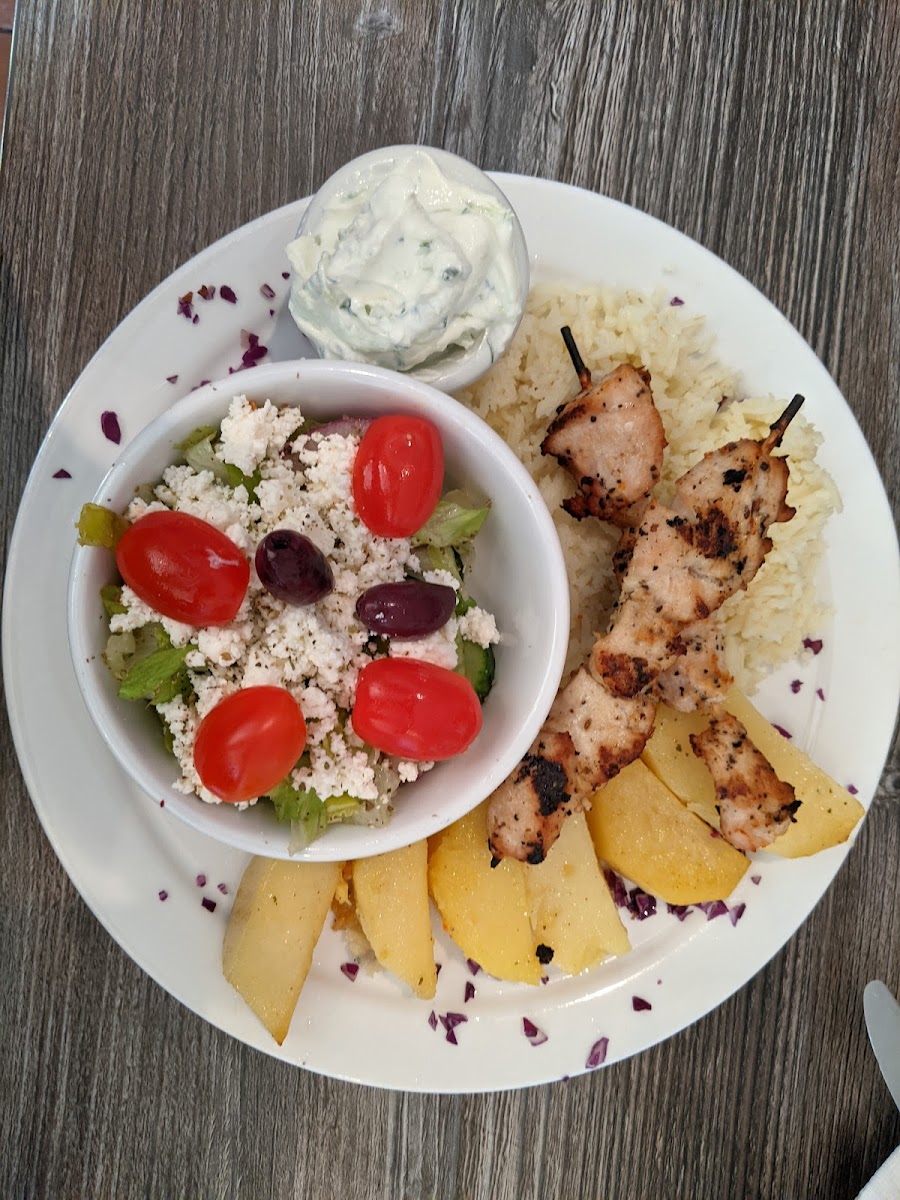 Purchased a skewer plate to-go. Was very good. Place was clean and staff were very friendly. Owner came over and offered for us to sit at a table , even though we weren’t staying. Taziki was fresh, wish I would have tried their potatoes!