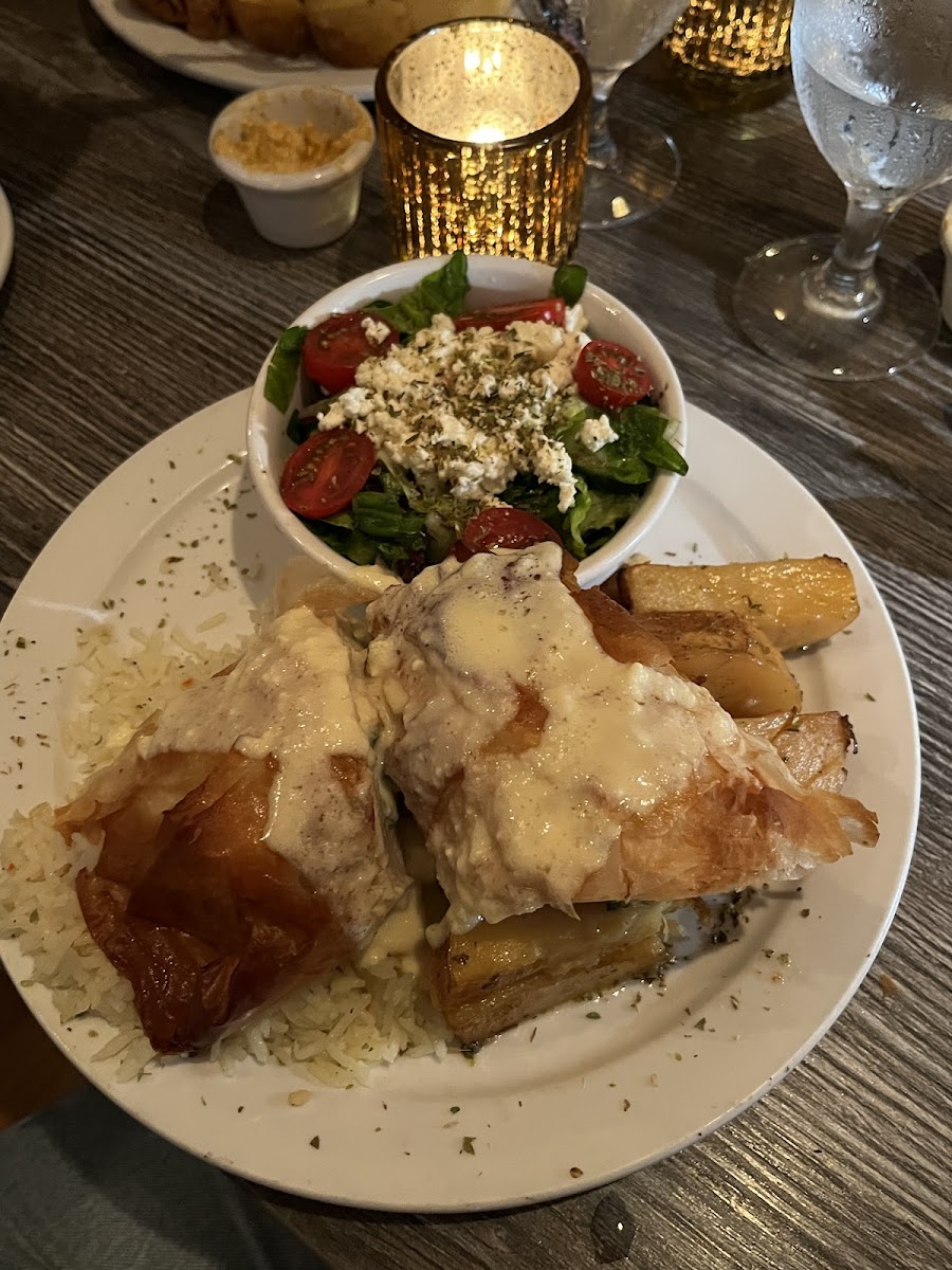 Always a delicious meal. I was alone and felt bad holding up a table, but nothing was going to stand between me and the Chicken Spanakopita. So glad it is on the menu. Way back, it was only available on Fridays.